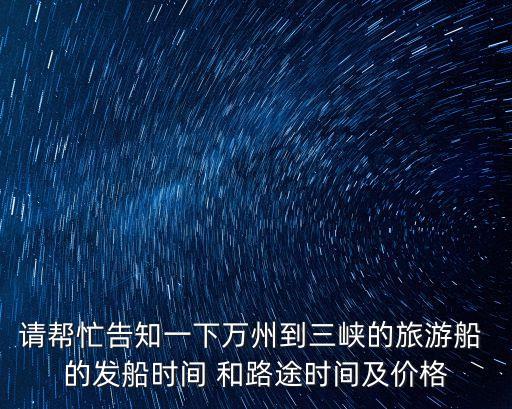 貴壩做游輪到貴池多久,請(qǐng)幫忙告知一下萬州到三峽的旅游船 的發(fā)船時(shí)間 和路途時(shí)間及價(jià)格